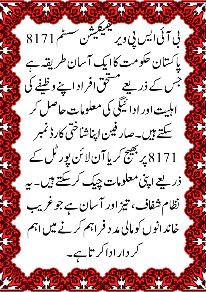 The 8171 service lets people who are eligible for BISP financial help check to see if they are. It links directly to the Government of Pakistan’s database, which makes sure that the information is correct and up to date.