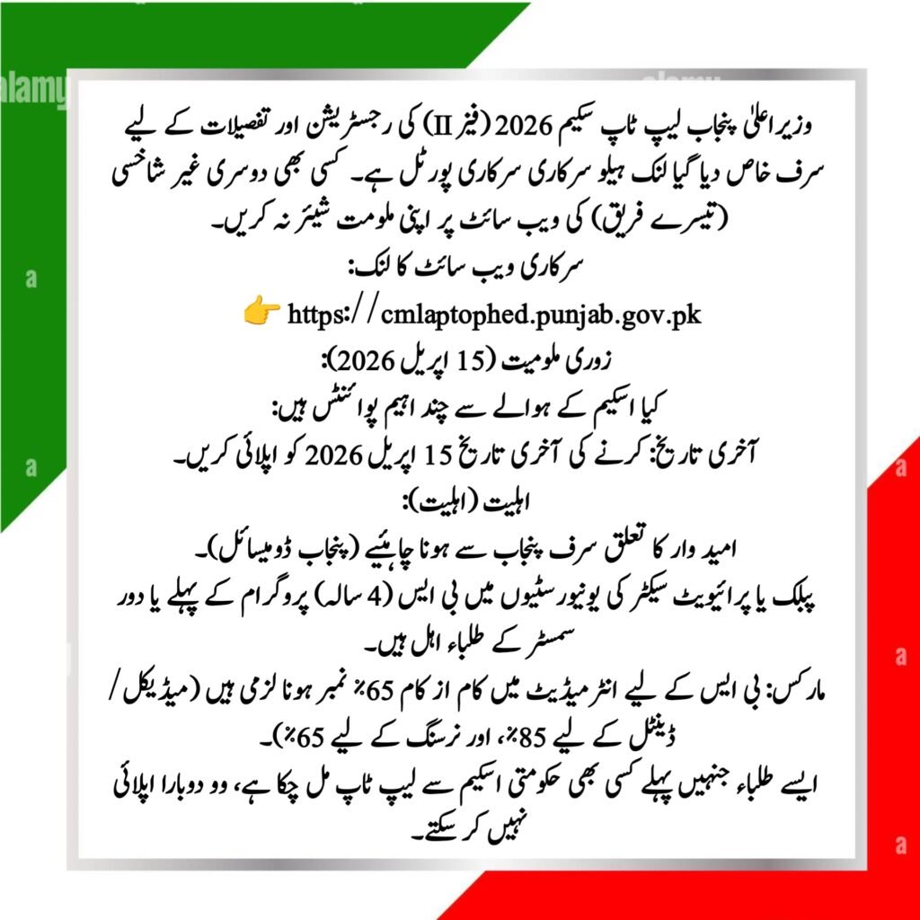 Always apply through official government websites. cmlaptophed.punjab.gov.pk