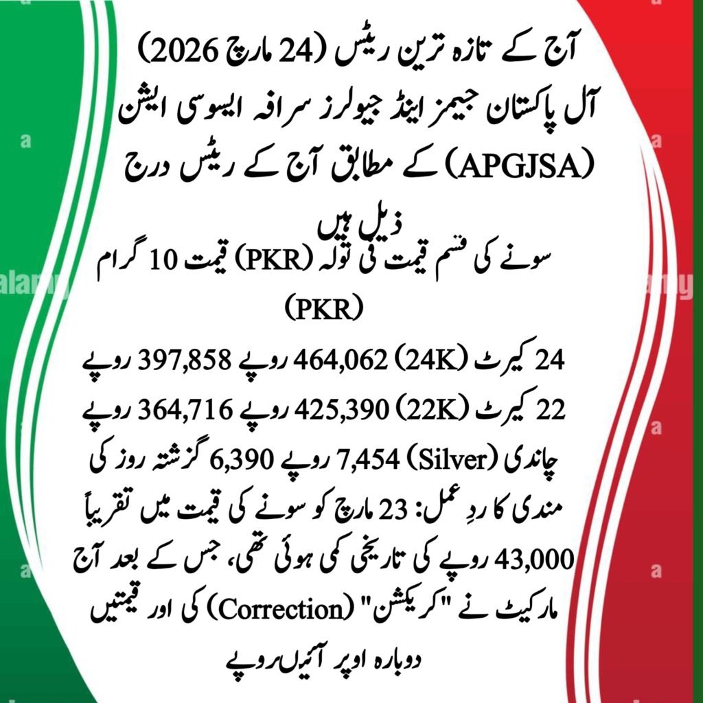 Gold continues to be one of the safest investment options in Pakistan, especially amid economic fluctuations and global uncertainty in 2026. On Tuesday, March 24, 2026, the bullion market remained highly active, with rates influenced by the All Pakistan Gems and Jewellers Sarafa Association and international trends.